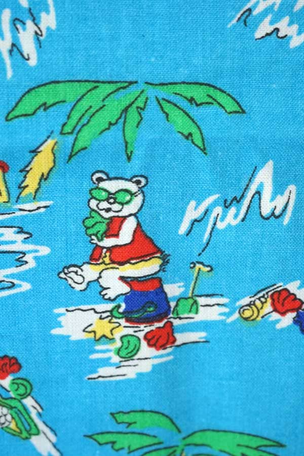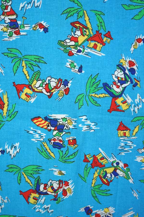 サマーバカンスモチーフのインテリアコットンファブリックW93×48cm 1980年代 gf-953