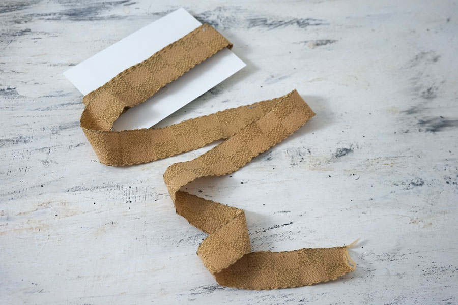 ヴィンテージのフランスのラメ入りウールの市松織リボンです。