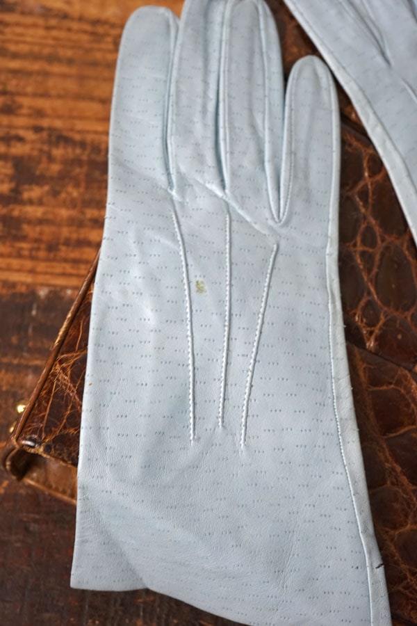 ヴィンテージの水色薄革の美しいグローブです。丁寧な縫製で作りの良いグロブです。