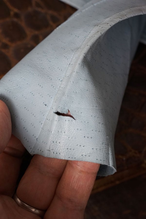 この革はシープスキンのようです。表面にパンチング加工されていてそれが模様になっています。