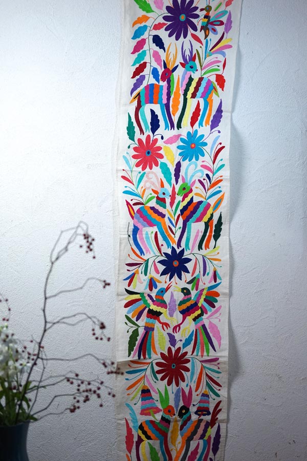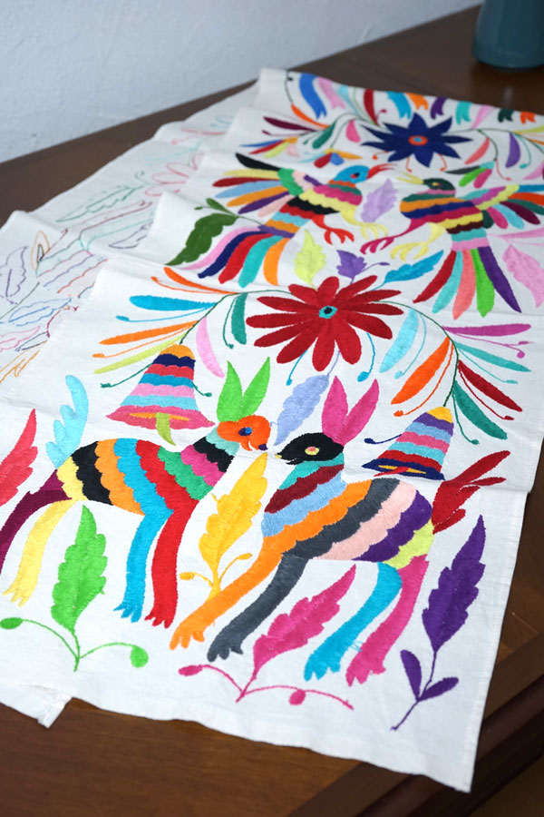 メキシコ・オトミ族のテナンゴ刺繍のテーブルランナー|番の森の動物たち44×190cm ge-1159