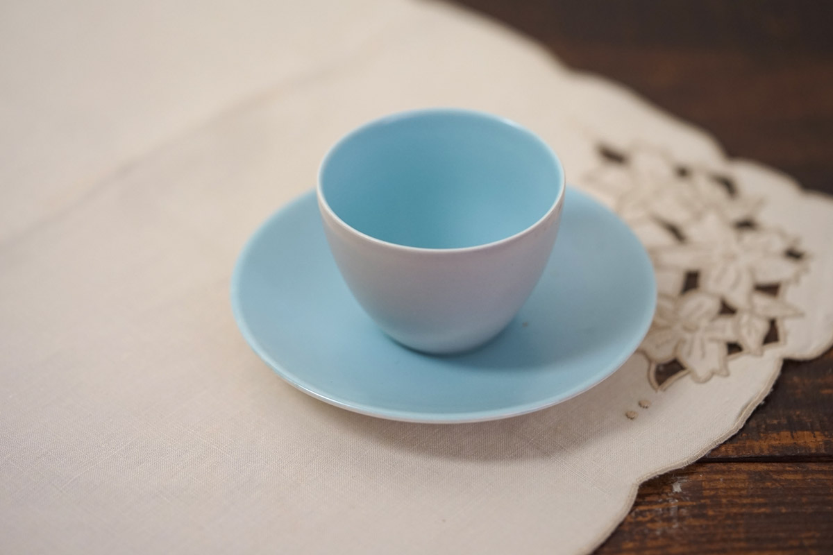 元々はシュガーボウルとして作られたものですが、デミタスカップのような少し深さのある形状が可愛らしく、多様な使い方が楽しめます。 朝の光に映える爽やかな色合いは、食卓に置くだけで機嫌よく一日をスタートさせてくれそうです。ヨーグルトやフルーツを盛り付けたり、ディップソースを入れたり。休日のブランチやティータイムに、また棚に飾っておくだけでも絵になる素敵なセットです。