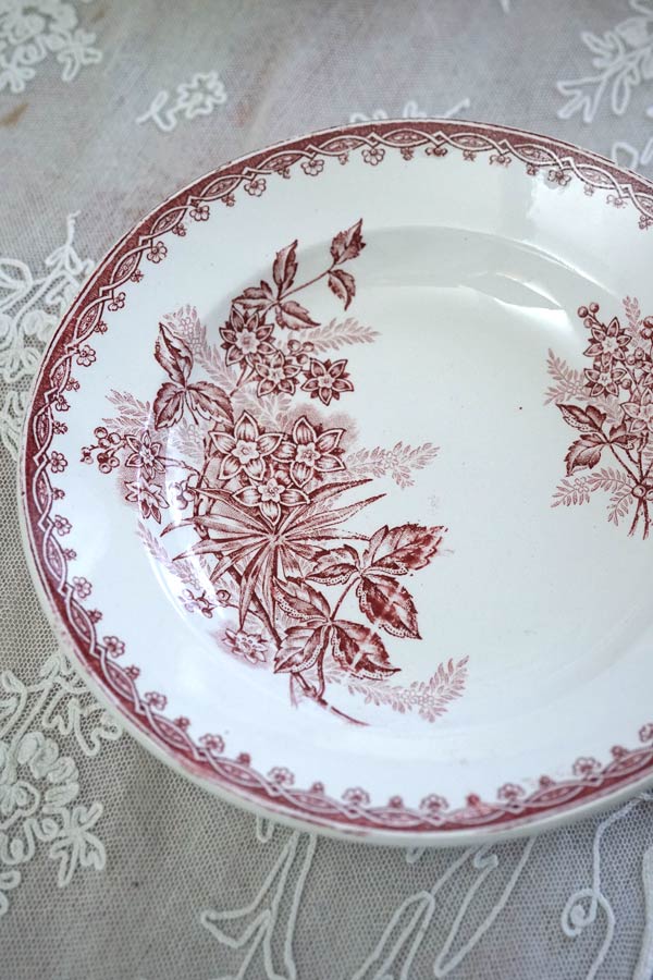 輸入アンティーク通販TOP >フランスアンティーク特集 > アンティークSt・Amandinoiseのボタニカルモチーフスープ皿 22×3.5cm gc-1152