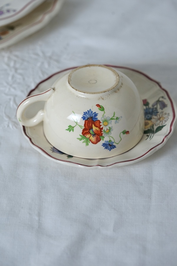 カップは可愛いポピーや矢車菊やマーガレットなどが描かれています。
