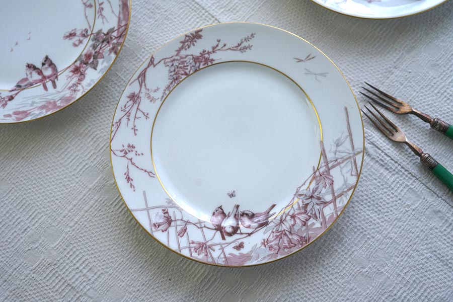 輸入アンティーク通販TOP >フランスアンティーク特集 > アンティークリモージュ小鳥とお花の平皿W21cm gc-1434