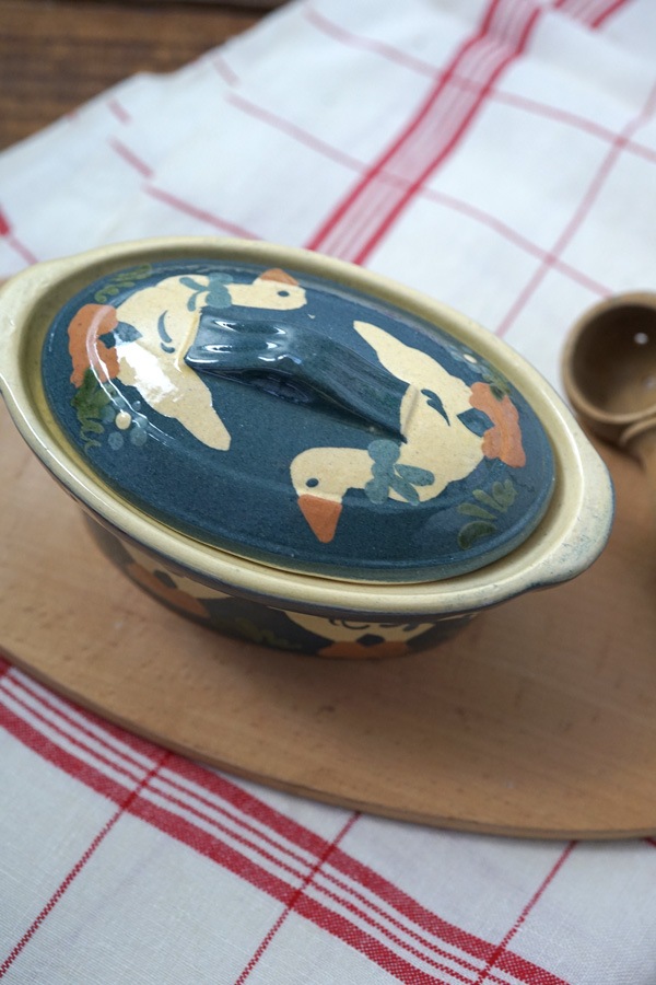フランスアンティークアヒルのパテ容器W16×D9×H7.5cm gc-1438