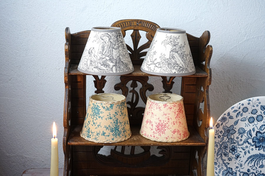 輸入アンティーク通販TOP >フランスアンティーク特集 > トワルドジュイのファブリックのミニシェードH11×W7〜14.5cm gk-580