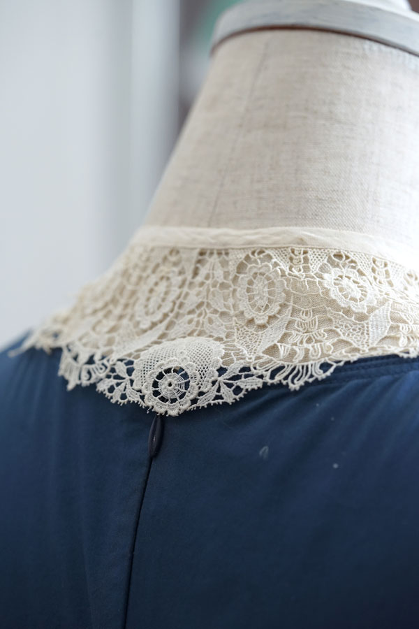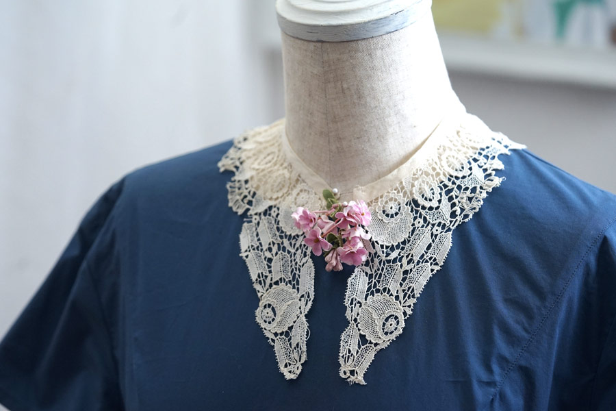 アイボリーの繊細なアンティークレース付け襟です。