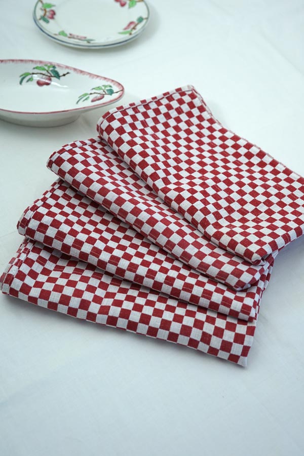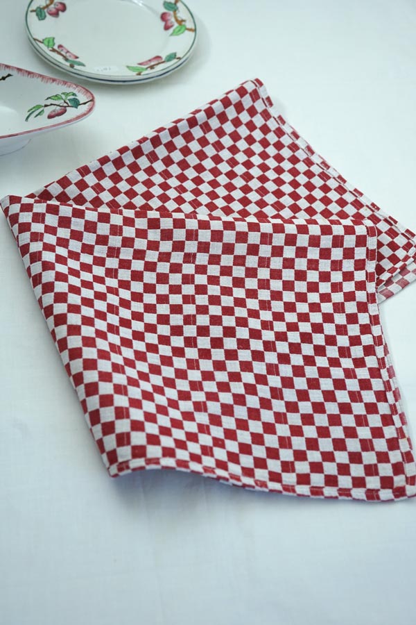 フフレンチチェックのキッチンリネンです。リネンの市松模様の織が素敵です。