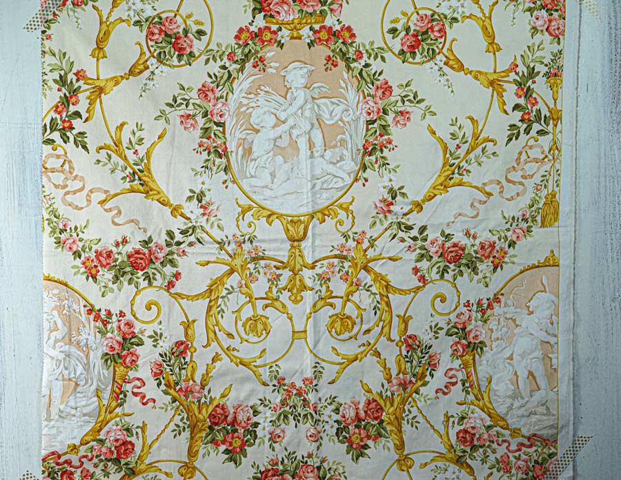 フランスヴィンテージファブリックお花とエンジェル66×65cm gf-852