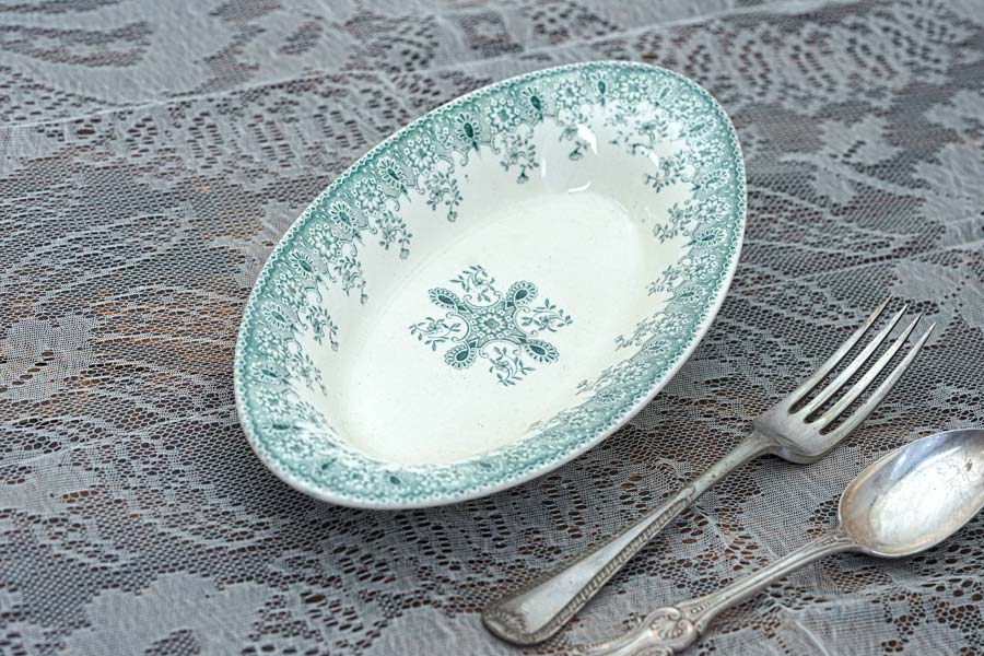アンティークグリーンの細やかなガーランドモチーフが美しいラヴィエです。