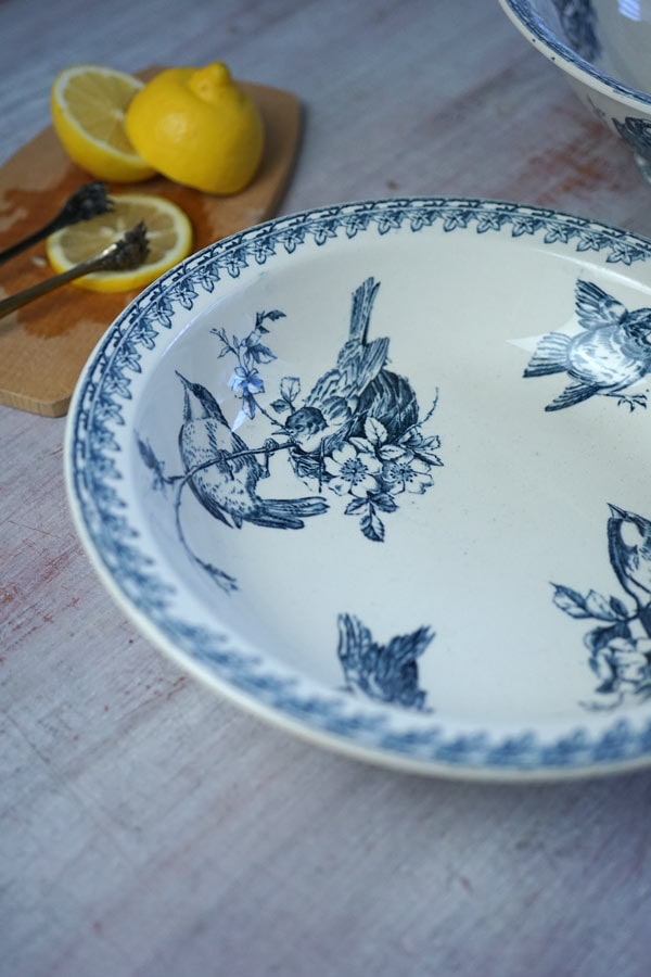 フランスで人気の鳥のモチーフ、こちらは以前にご紹介したシリーズのサラダボールです。