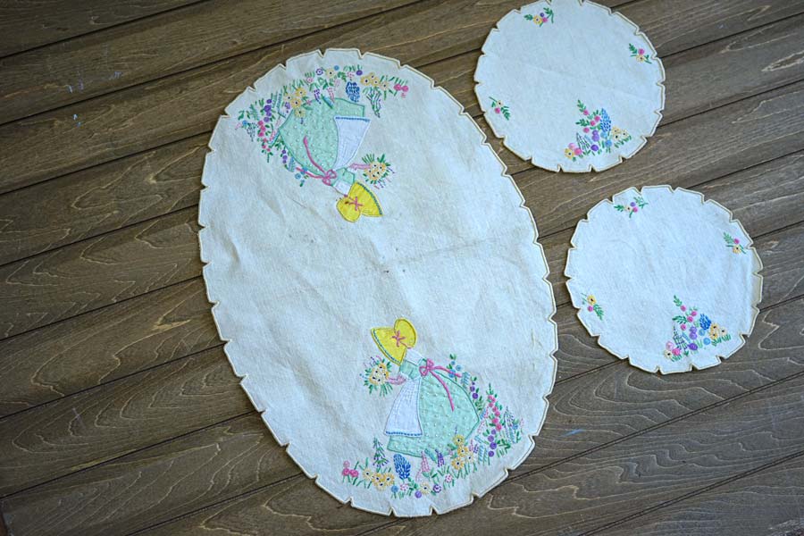 輸入アンティーク通販TOP >インスタグラム掲載商品 > イングリッシュガーデンと少女の刺繍マット3点セット gc-1063