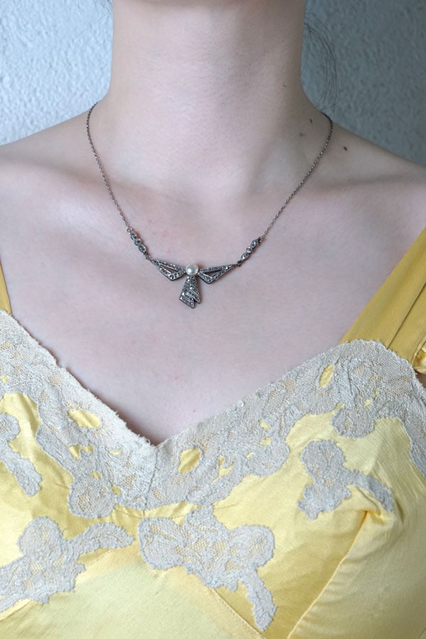 輸入アンティーク通販TOP >インスタグラム掲載商品 > アールデコのマーカサイトとパールのネックレス47cm 1930年代 ga-1099