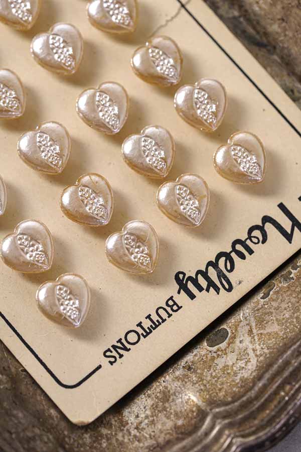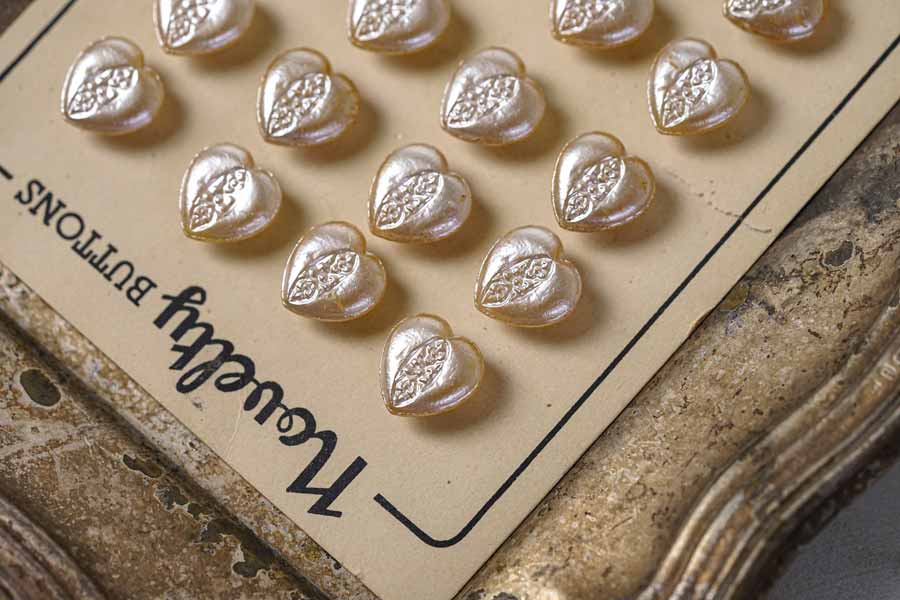 輸入アンティーク通販TOP >アンティークボタン > ガラスのゴールドパールコーディングハートボタン1×1cm4個セット gbu-046