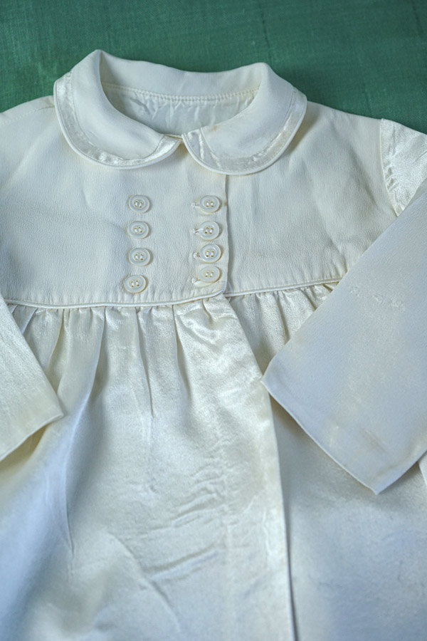 輸入アンティーク通販TOP >イギリスアンティーク特集 > お宮参りにも最適なイギリスの美しいお仕立ての厚手サテンのベビーコート gd-240
