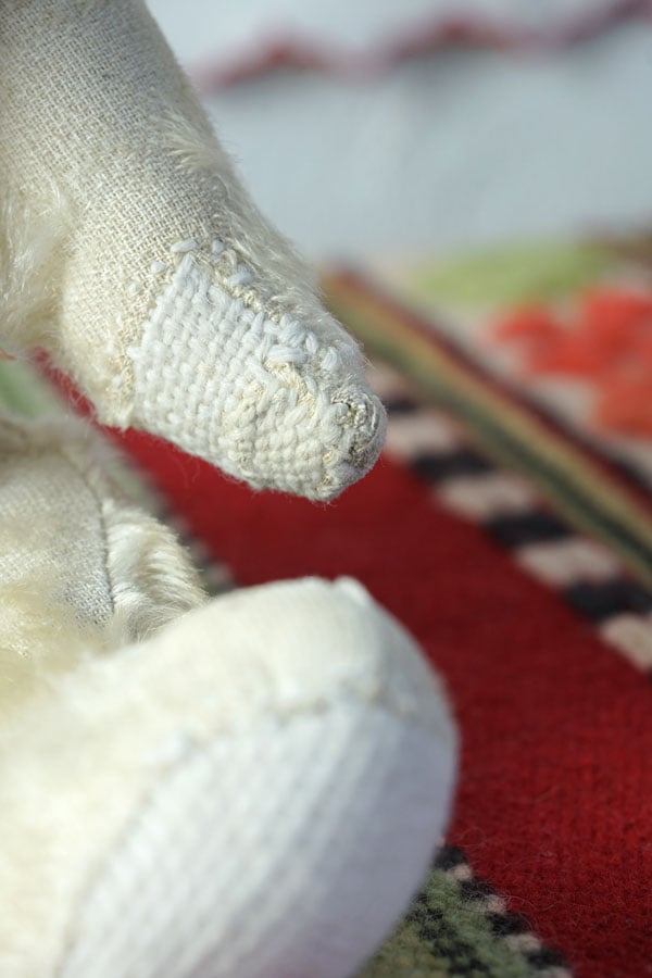 手足のパットはお毛糸のダーニングで見事に修復されています。