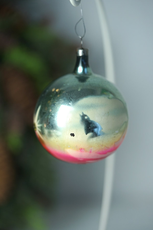 アンティークの吹きガラス製マーキュリーガラスボールです。