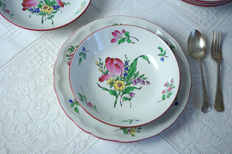 フランスアンティークのリュネビルK&G手描きサラダプレートです。