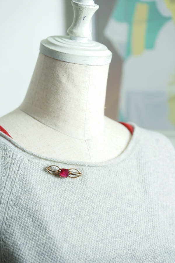 \深紅の輝きを纏う、アンティークブローチ/