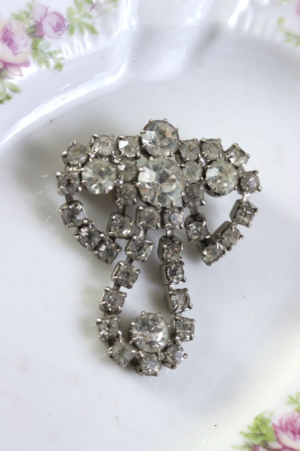 輸入アンティーク通販TOP >アンティークアクセサリー > クリスタルガラスストーンの揺れるブローチ3.3×4cm ga-1158
