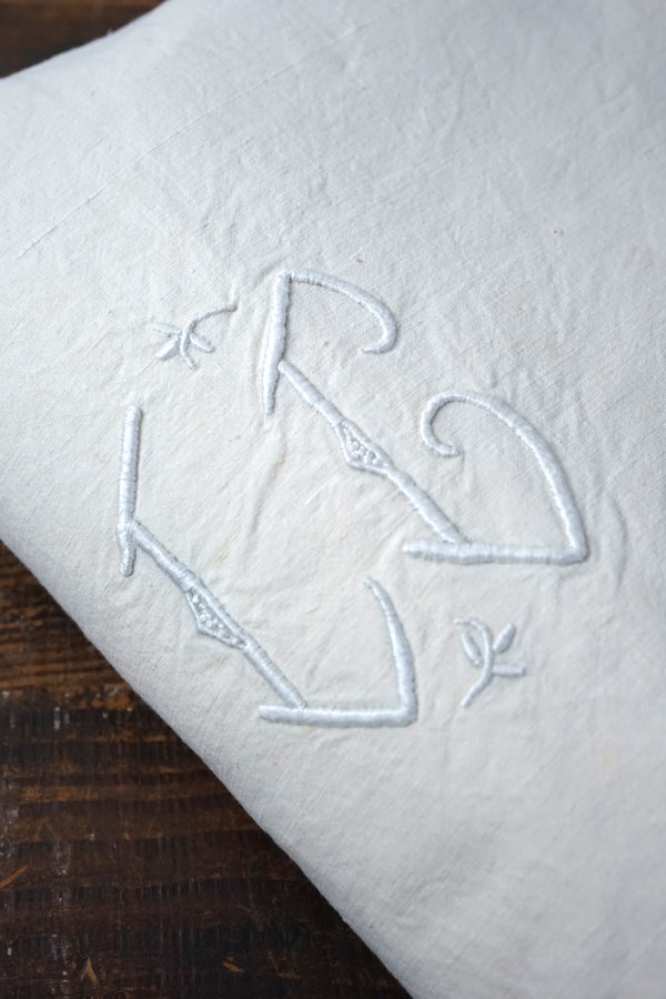 輸入アンティーク通販TOP >アンティークリネン > アルファベット・イニシャル刺繍リネン > アンティークフレンチリネンシーツ アルファベットモノグラム刺繍LG204×280cm gli-0363
