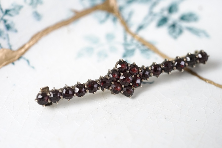 輸入アンティーク通販TOP >アンティークアクセサリー > 1890年ワインレッドの美しいガーネットのバーブローチ4.3cm ga-1233