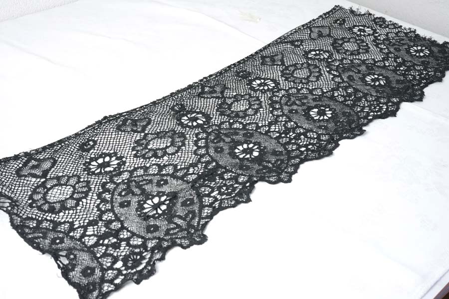 輸入アンティーク通販TOP >アンティークレース > アンティークブラックシルクボビンレースボーダー82×30cm gla-2007