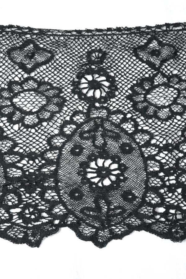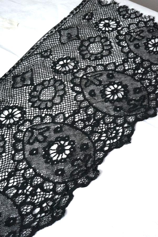 アンティークブラックシルクボビンレースボーダー82×30cm gla-2007
