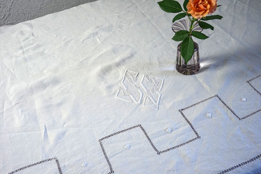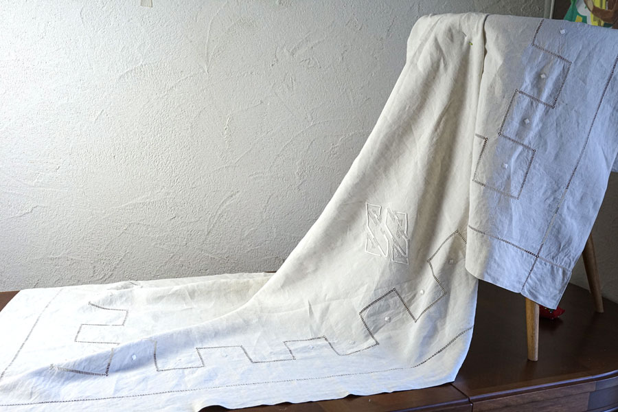 当時、結婚を迎える花嫁のために、ひとつひとつ丁寧に準備されたベッドリネンです。