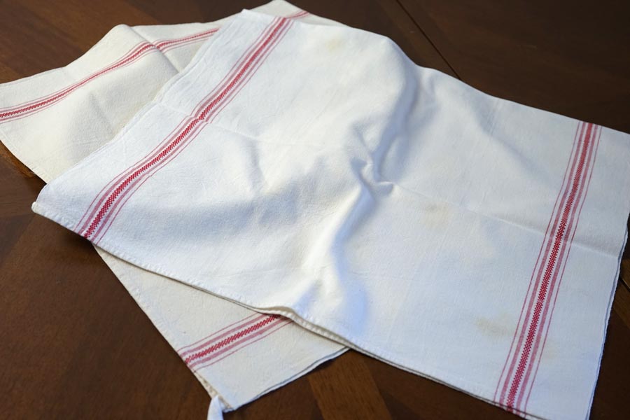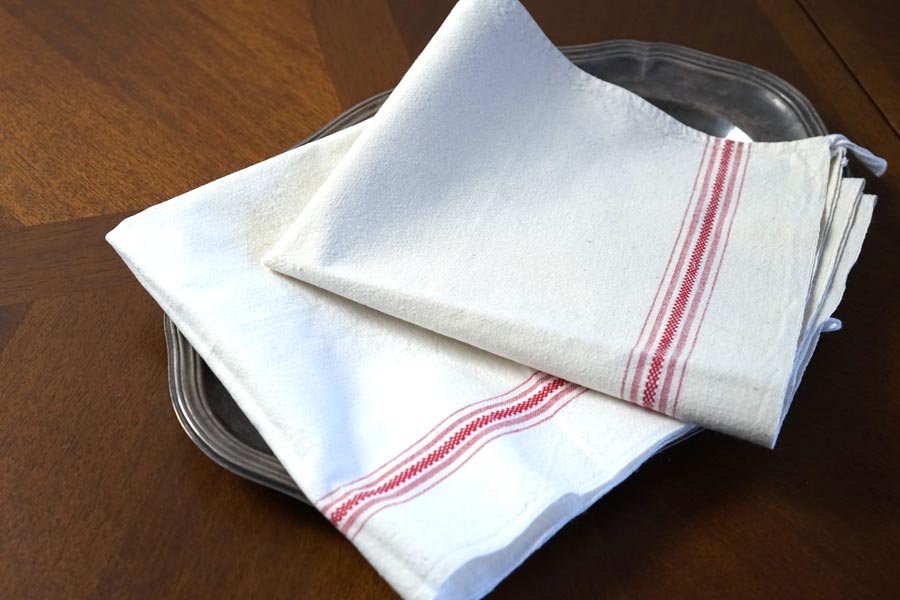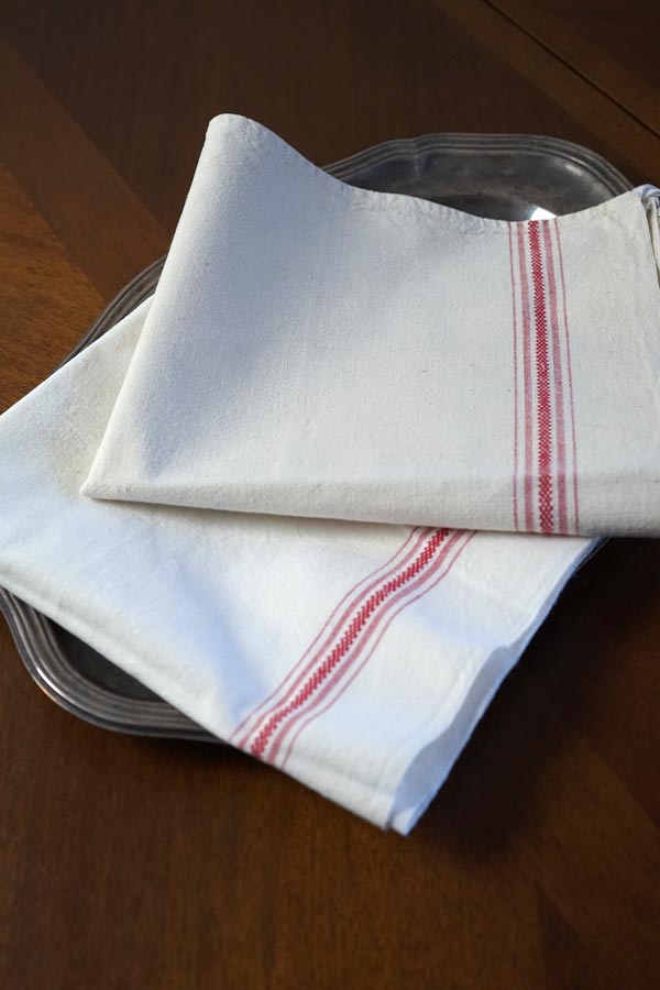 輸入アンティーク通販TOP >アンティークリネン > テーブルクロス・ナプキン・ティ-タオル > 【お買い得】フランスのレッドラインのキッチンリネン2枚セット gli-0376
