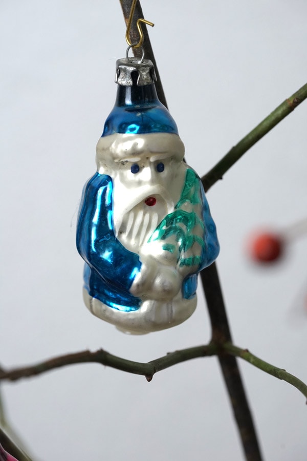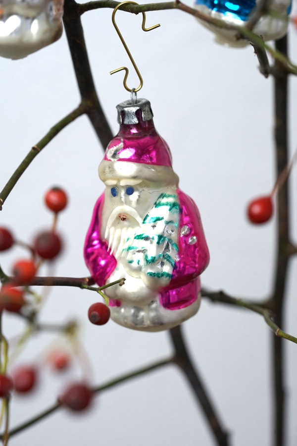 ご紹介するのは、1930〜40年代頃のヴィンテージ品です。鋳型に吹きガラスで作られた、薄いガラスのオーナメントで、クリスマスデコレーションには欠かせません。