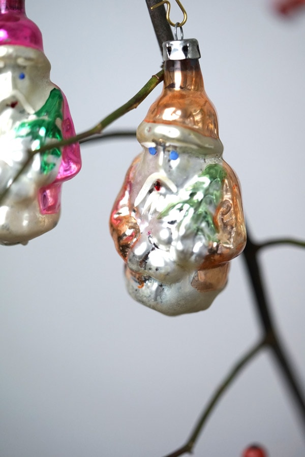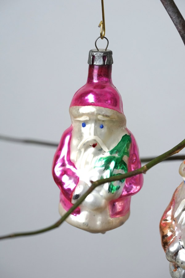 ご紹介するのは、1930〜40年代頃のヴィンテージ品です。鋳型に吹きガラスで作られた、薄いガラスのオーナメントで、クリスマスデコレーションには欠かせません。