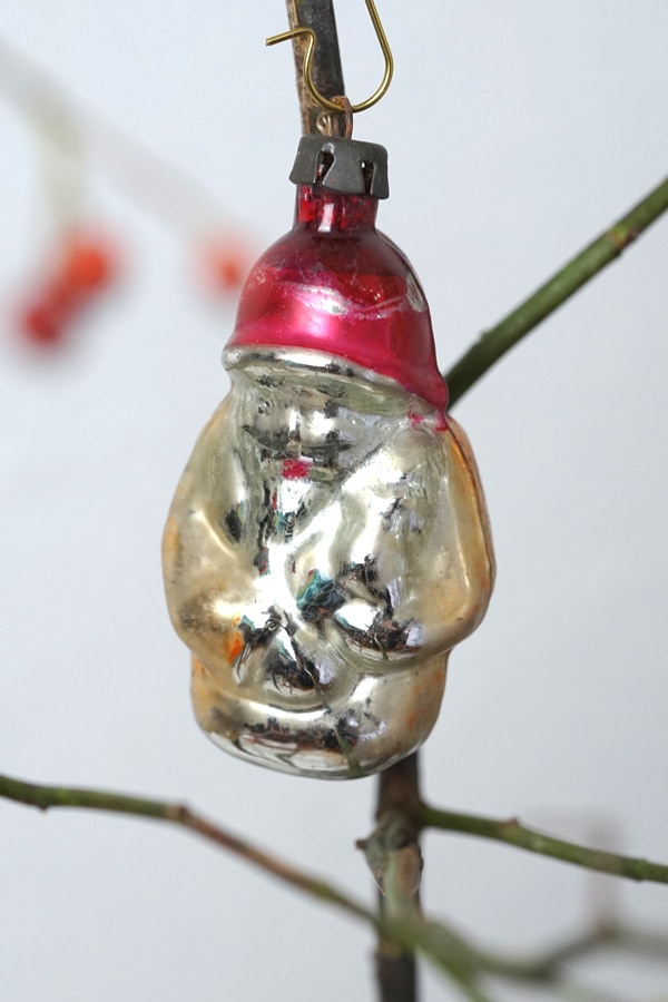 ご紹介するのは、1930〜40年代頃のヴィンテージ品です。鋳型に吹きガラスで作られた、薄いガラスのオーナメントで、クリスマスデコレーションには欠かせません。