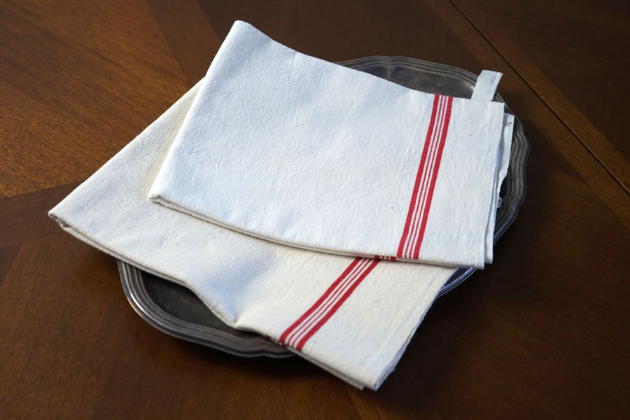 輸入アンティーク通販TOP >アンティークリネン > テーブルクロス・ナプキン・ティ-タオル > 【お買い得】フランスのレッドラインのキッチンリネン2枚セット gli-0377