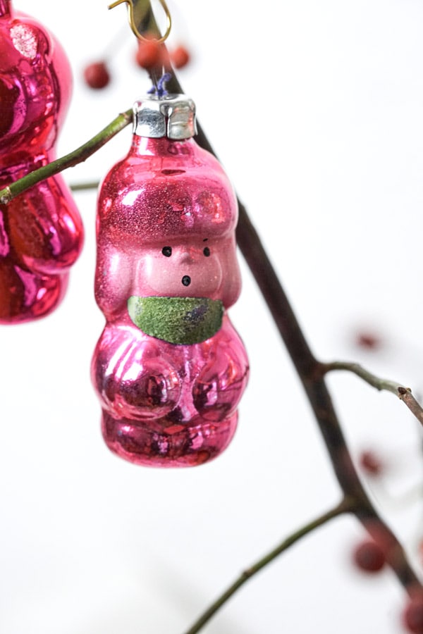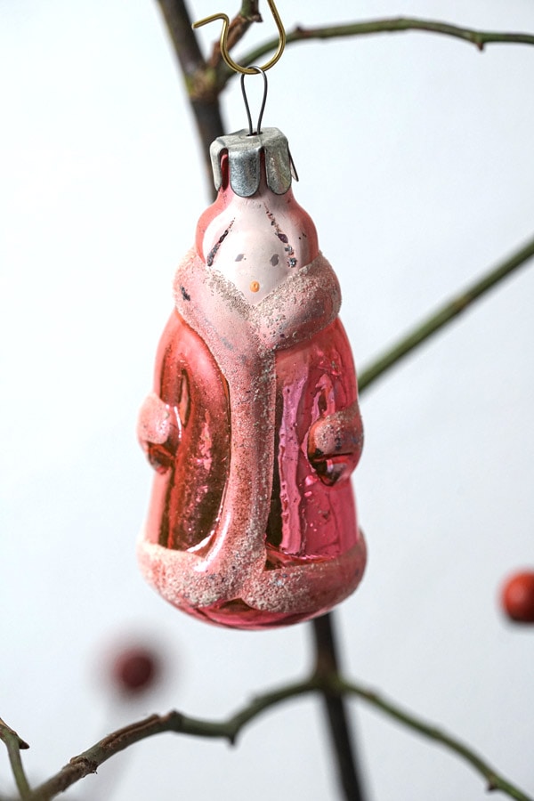 ご紹介するのは、1930〜40年代頃のヴィンテージ品です。鋳型に吹きガラスで作られた、薄いガラスのオーナメントで、クリスマスデコレーションには欠かせません。