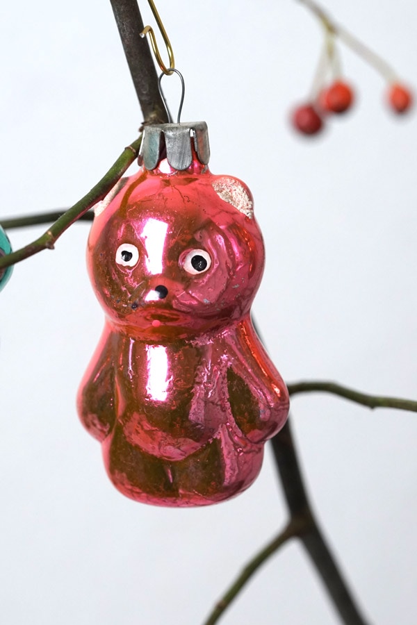 ご紹介するのは、1930〜40年代頃のヴィンテージ品です。鋳型に吹きガラスで作られた、薄いガラスのオーナメントで、クリスマスデコレーションには欠かせません。