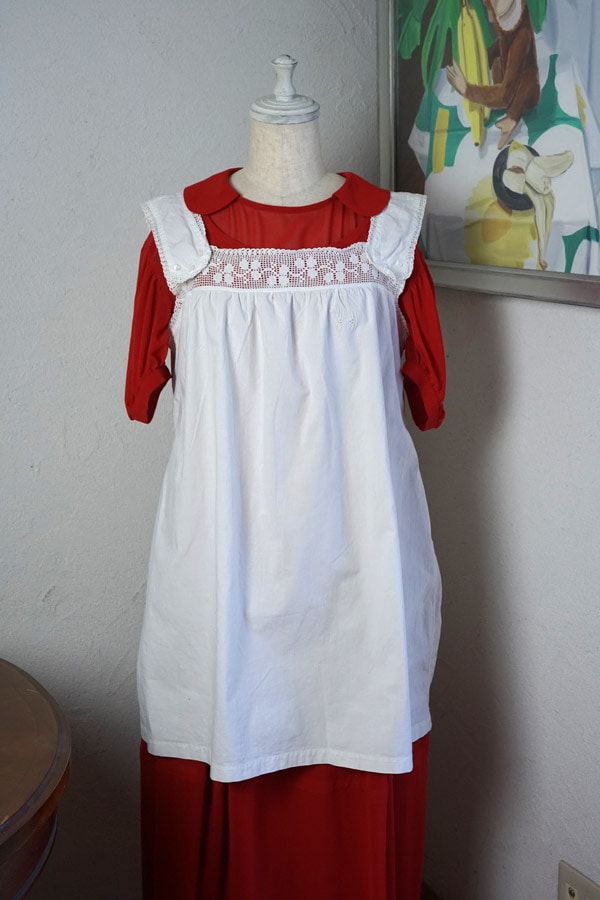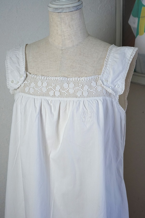輸入アンティーク通販TOP >アンティークドレス > アンティークAラインコットンワンピースモノグラム刺繍付き gd-266