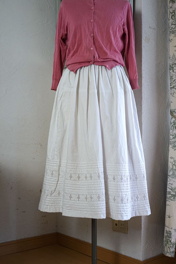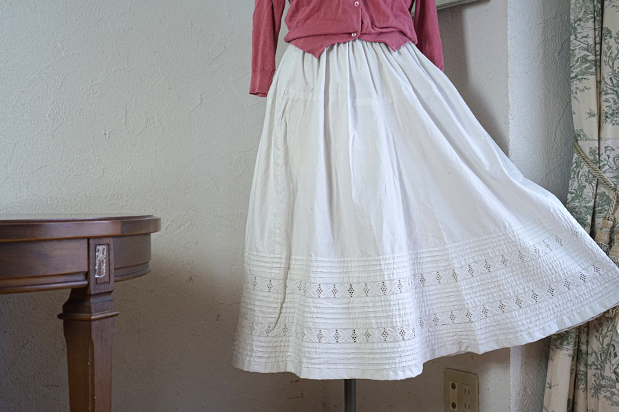 輸入アンティーク通販TOP >アンティークドレス > 手刺繍レースとピンタックの入ったアンティークコットンリメイクスカートgd-269