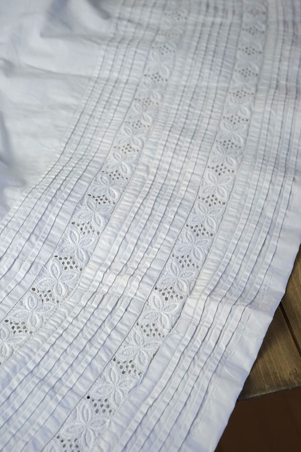 アンティークの手刺繍レースとピンタックの入ったコットンファブリックでスカートを作ってみました。