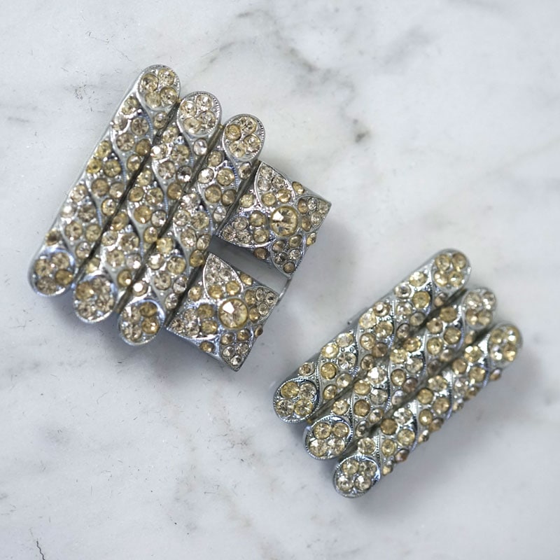 【シックさの中に煌めきが同居】1930年代 アールデコ ラインストーンのアンティークバックル(英国製)ga-1245