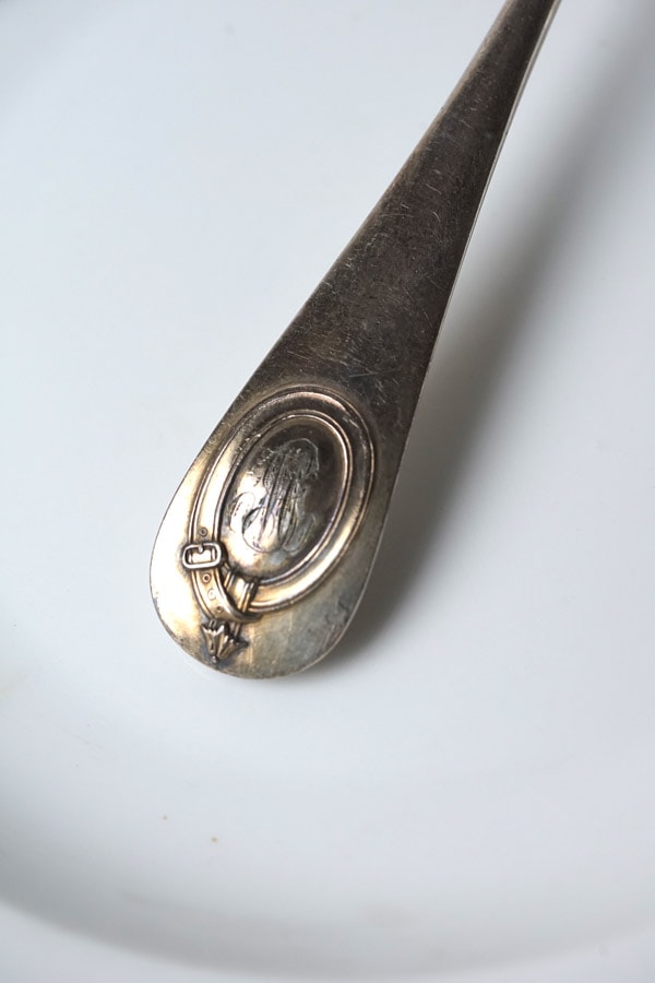 ハンドルエンドには優美なモノグラムが刻印されており、かつて大切に使われていたことが窺えます。