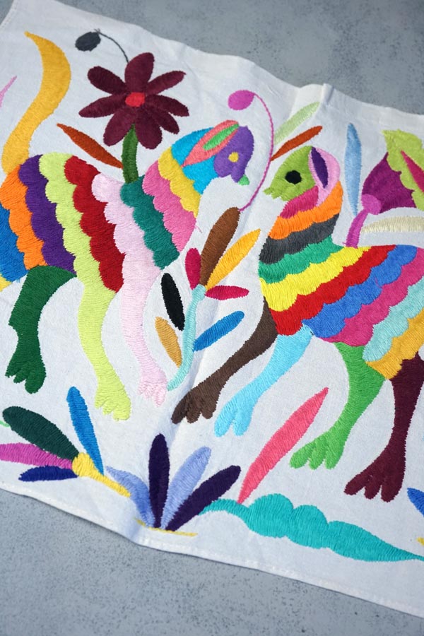 【メキシコ・オトミ族のテナンゴ刺繍|見つめ合う2頭の動物たち】