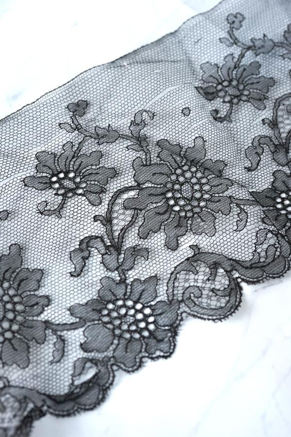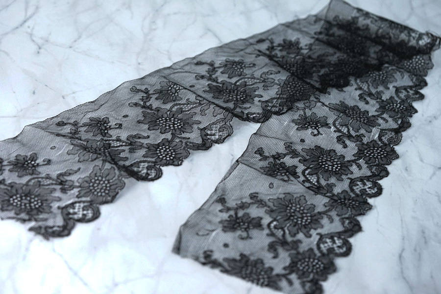 輸入アンティーク通販TOP >インスタグラム掲載商品 > アンティークのシルクブラックレースボーダー115×15cm gla-2029