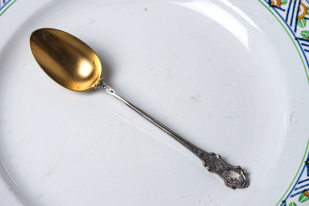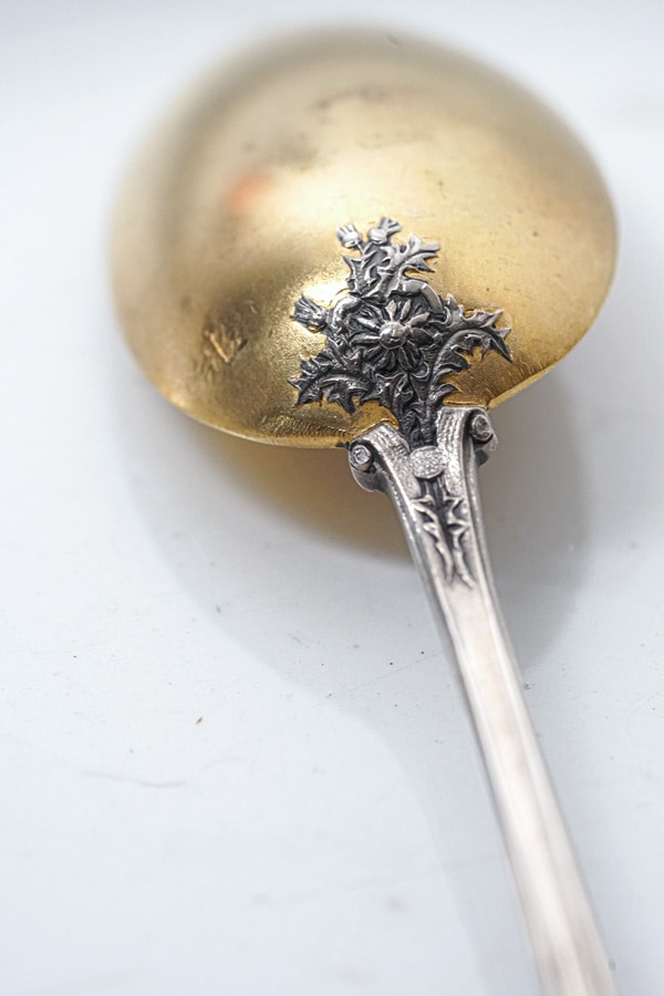 ボウル部分には、シルバーの上に金を施した「ヴェルメイユ」の輝きが残っています。