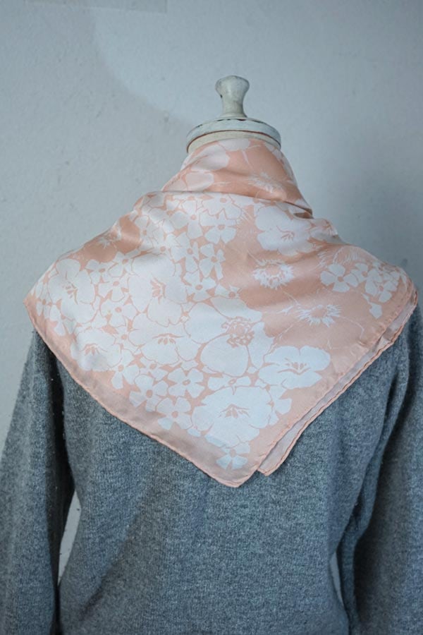 輸入アンティーク通販TOP >アンティークドレス > スカーフやショールや傘 > 【英国ヴィンテージ】Jacqmar 桜色に白い花々が咲き誇る 上質なシルクツイルスカーフ(1960-70年代)68×67cm gd-298
