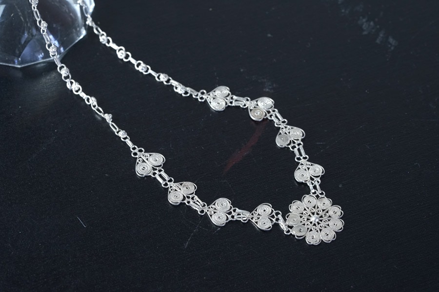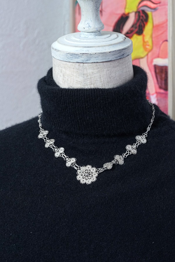 輸入アンティーク通販TOP >アンティークアクセサリー > オアハカの手仕事シルバー950ワイヤーワークのお花ネックレス ga-1268 ga-1268